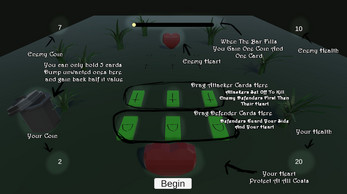 A buglike card roguelike where you get given a hand of bug cards to defeat the enemy heart. First time trying to make a card game and it turned out alright.